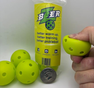 The only of its kind (patent-pending), and the neon yellow shot in the arm you’ve been waiting for. At 1.75” in diameter, our lightweight, composite (hollow rubber) ball is smaller and lighter than a traditional pickleball, and guaranteed to take your game to the next level. Comes in a sleeve of 3.